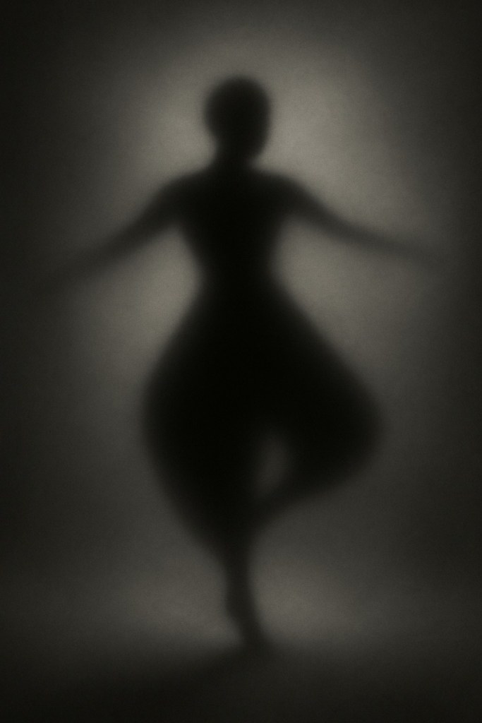 Their skin tautened, and their features sharpened. The nose took on a beak-like elegance. The cheekbones drew higher. The eyes moved deeper into shadowed hollows. Their face tightened into something more elemental than human. They executed a slow, miraculous somersault. While still balanced on a single leg, they landed perfectly, continuing the twirl without effort, without breathlessness, without age.