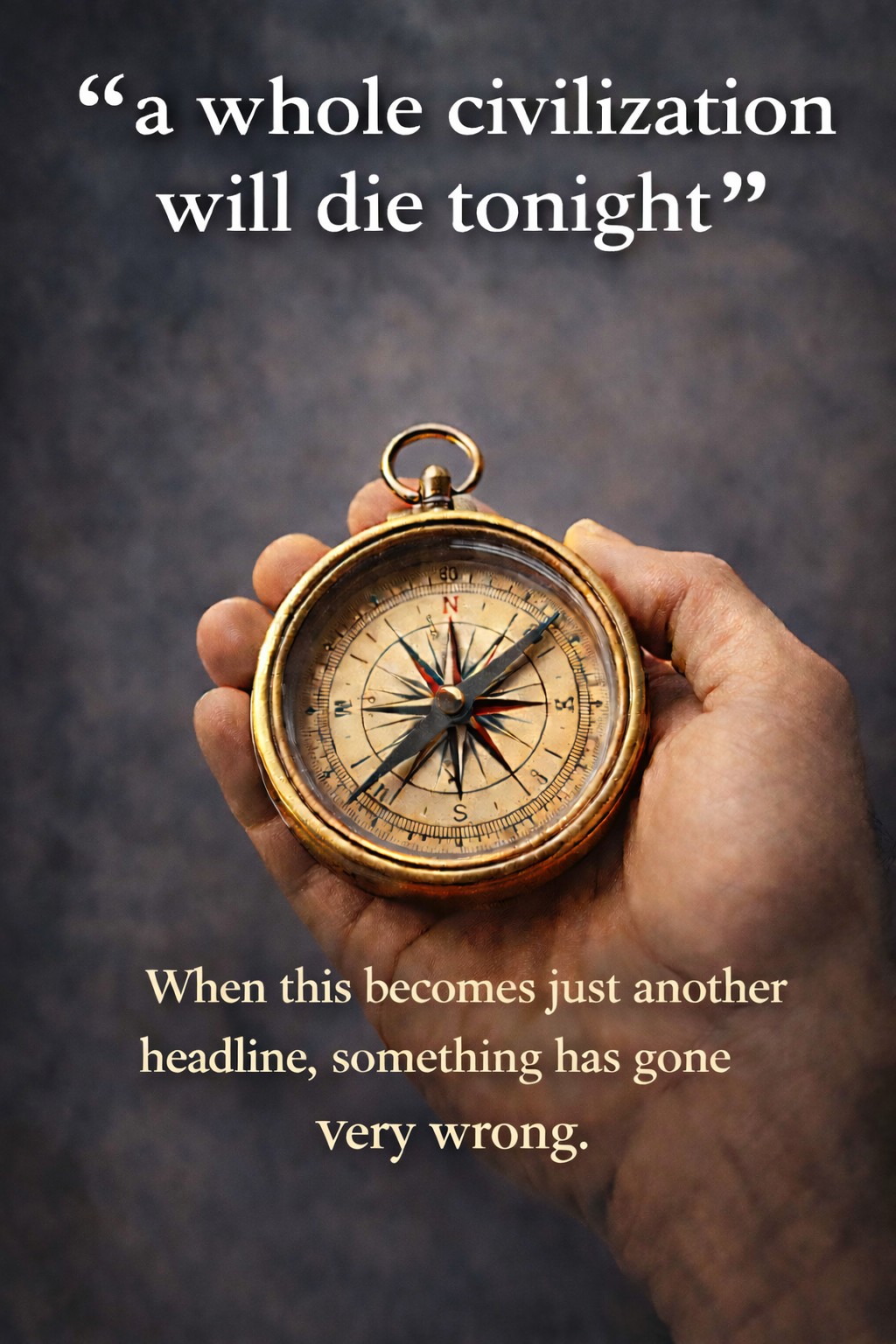 My moral compass is not a substitute for evidence. But neither is evidence meaningful without some internal measure capable of recognizing when rhetoric crosses thresholds that once would have prompted gasps of disbelief around the world, followed by sustained collective stillness.